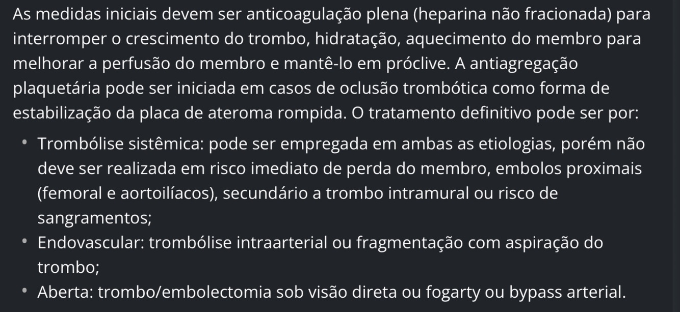 Medidas iniciais e definitivas: OAA por trombose arterial aguda