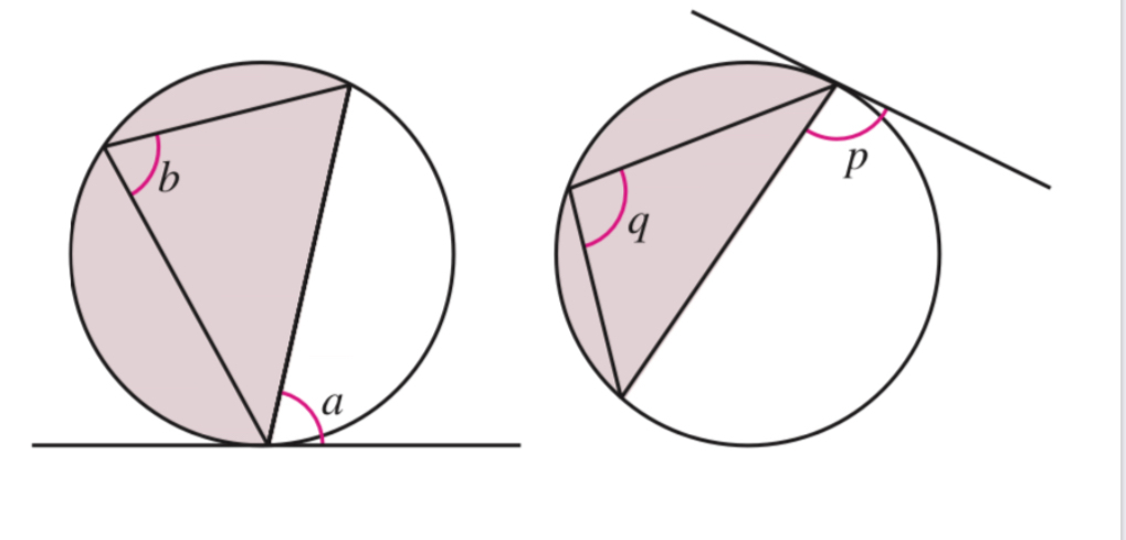 The angle between a tangent and a chord is equal to the angle in the alternate segment