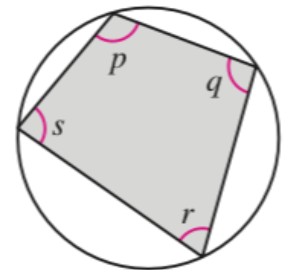 Opposite angles of a cyclic quadrilateral add up to 180o