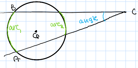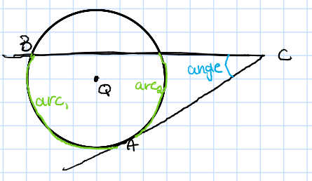 if a tangent and secant intersect, then the square of the measure of the tangent segment is equal to the product of the measures of the the entire secant segment and its external part