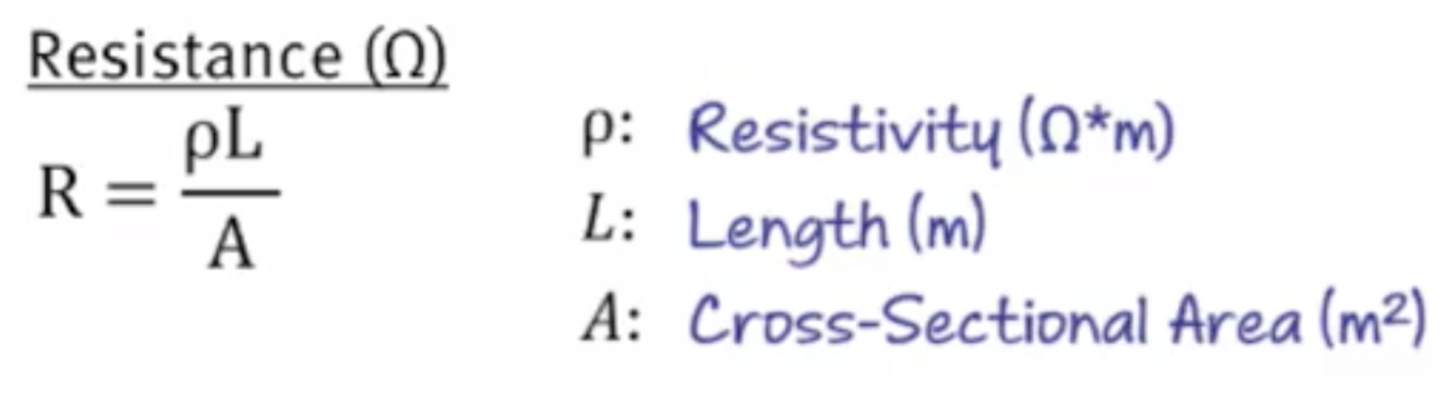 Resistivity is the opposition to the flow of current/charge. The formula for calculating resistance (which is measured in Ohms) is: