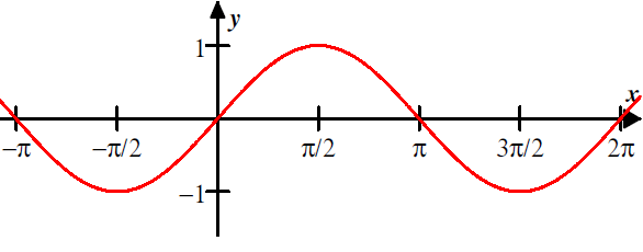 What are the x-intercepts of y = sin(x) in the interval [0, 2π]?