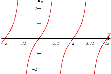 What are the x-intercepts of y = tan(x) in the interval [0, 2π]?