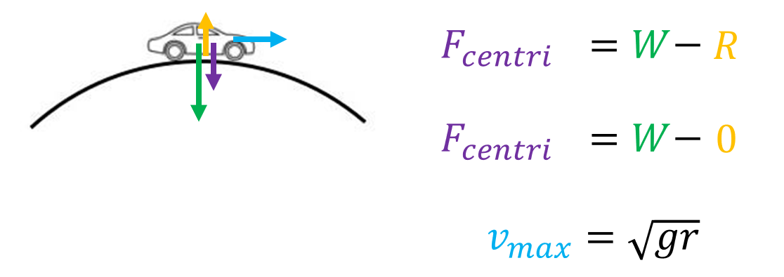 How do you find out the maximum velocity for an object travelling over a vertical circle? (eg car over a hill)