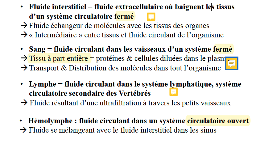 Fluide propulsé par des coeur et cirulent des vaisseaux aux sinus : alimente tissus