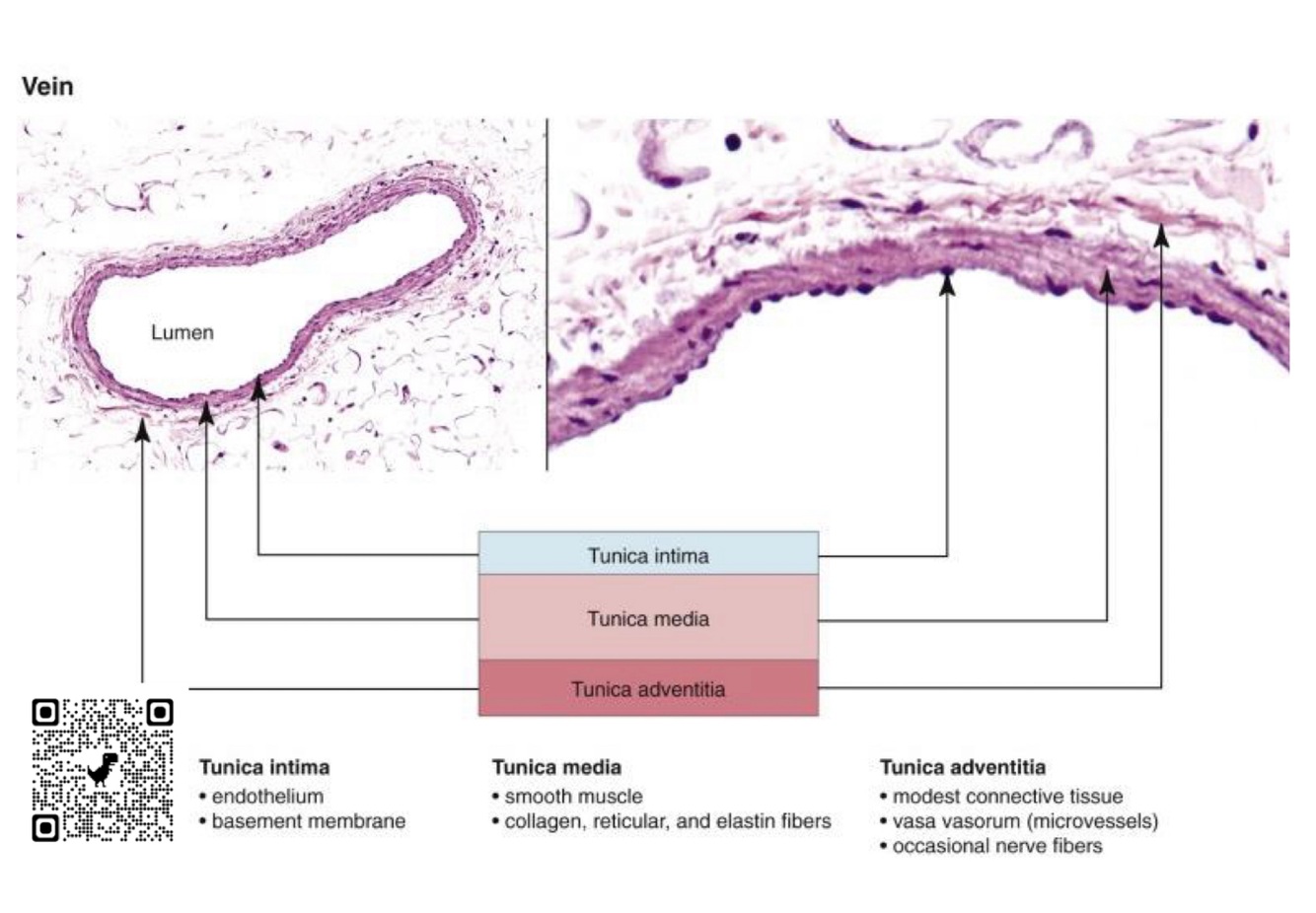 veins are larger + consists of collagen w/ small amounts of elastin + smooth muscle