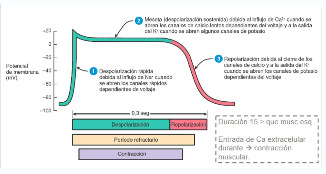 El músculo cardiaco ventricular presenta período refractario (0,25 a 0,30 s) más largo que el auricular (0,15s)