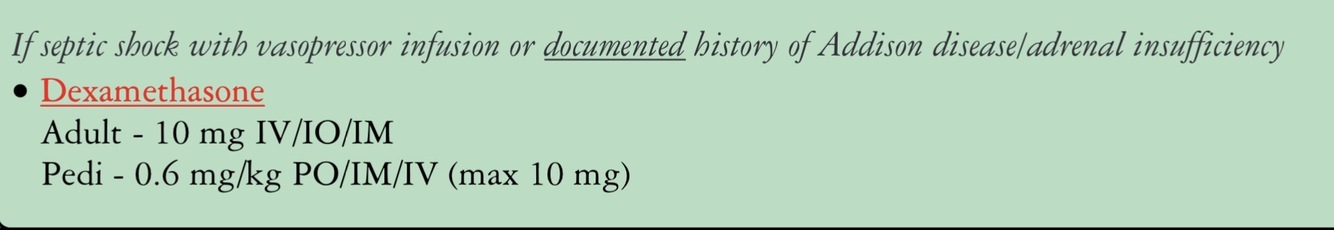 Indication: If septic shock with vasopressor infusion or documented history of Addison disease/adrenal insufficiency