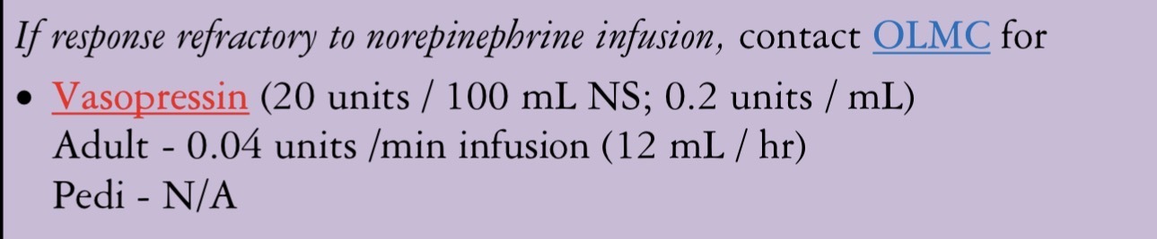 Indications: Vasopressin is indicated to increase blood pressure in adults in vasodilatory shock refractory to the application of fluids and catecholamines.