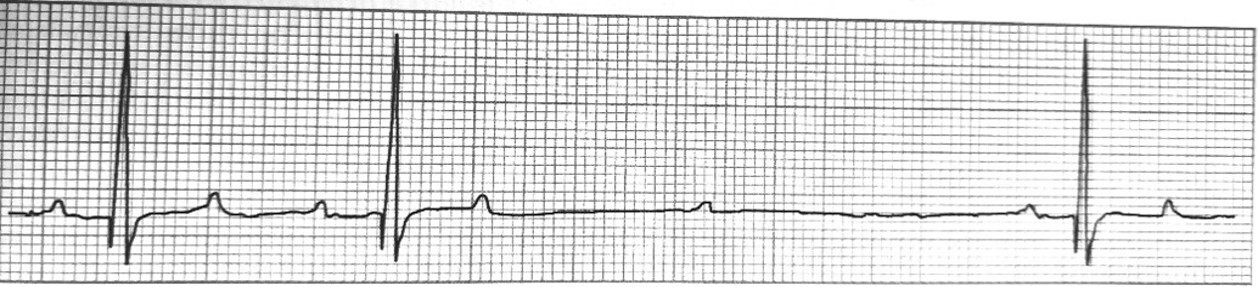 - Mobiz typ 2: P-R intervall konstant tills det plötsligt inte ses ett QRS