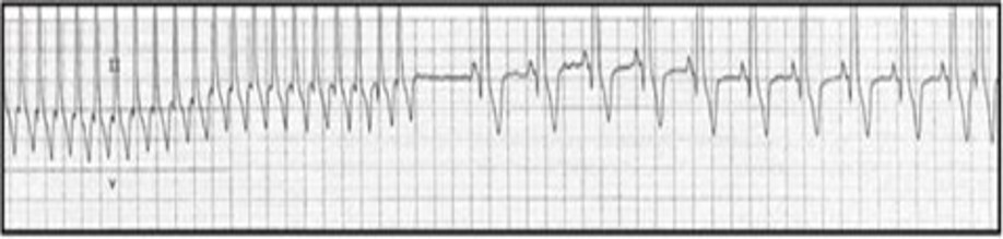 Kommer för tidigt i rytmen Mer än 3 på rad återkommande - ventrikulär takykardi