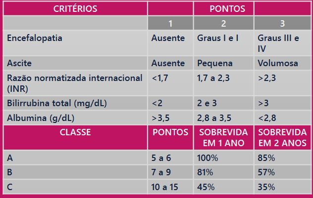 Qual é o sistema de avaliação da doença hepática crônica que classifica quanto a transplante hepático?