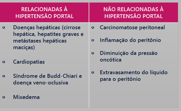 Relacionada a hipertensão portal ou relacionada ao peritôneo