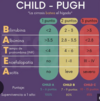 AST/ALT variables, hipoalbuminemia, INR prolongado, plaquetopenia