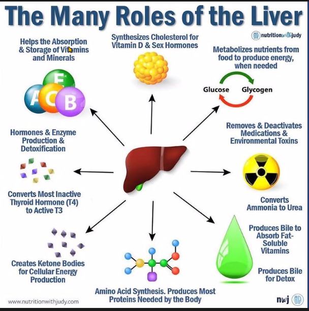 Nombra 6 funciones del hígado