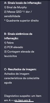Febre, dor em HD, nauseas. Outros parametros bons.