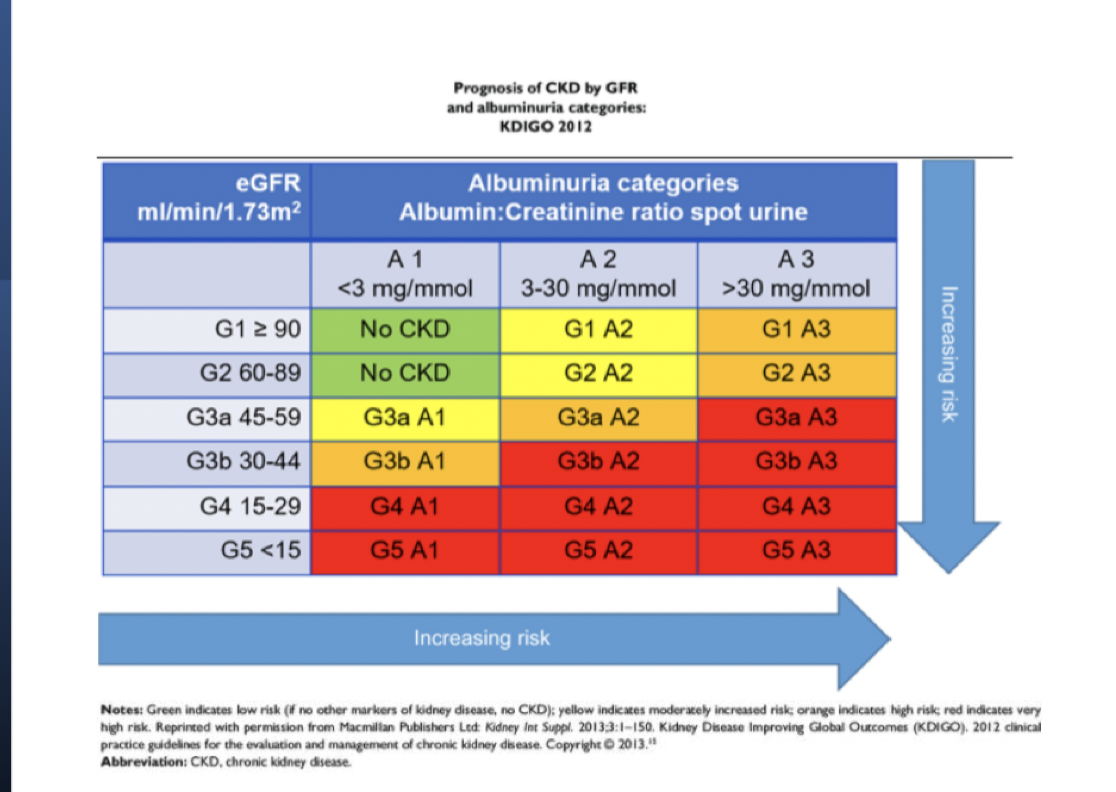 Prognos - Vid uppföljning och behandling av patient med njursjukdom, samt uppföljning av patient med en sjukdom som kan leda till njurskada (hypertoni, diabetes, hjärtsvikt).