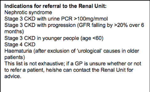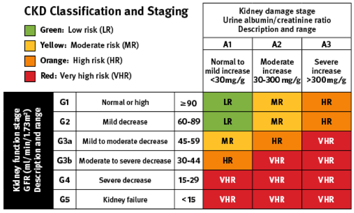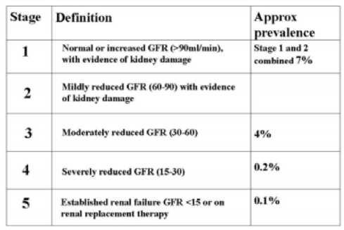 Impaired renal function for >3 months based on abnormal structure/function, or GFR <60ml/min for >3 months with/out evidence of kidney damage.