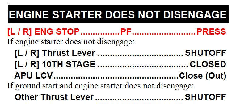 ENGINE STARTER DOES NOT DISENGAGE Memory Items (1)?