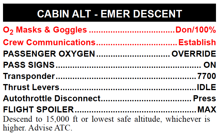 CABIN ALT - EMER DESCENT Memory Items (2)?