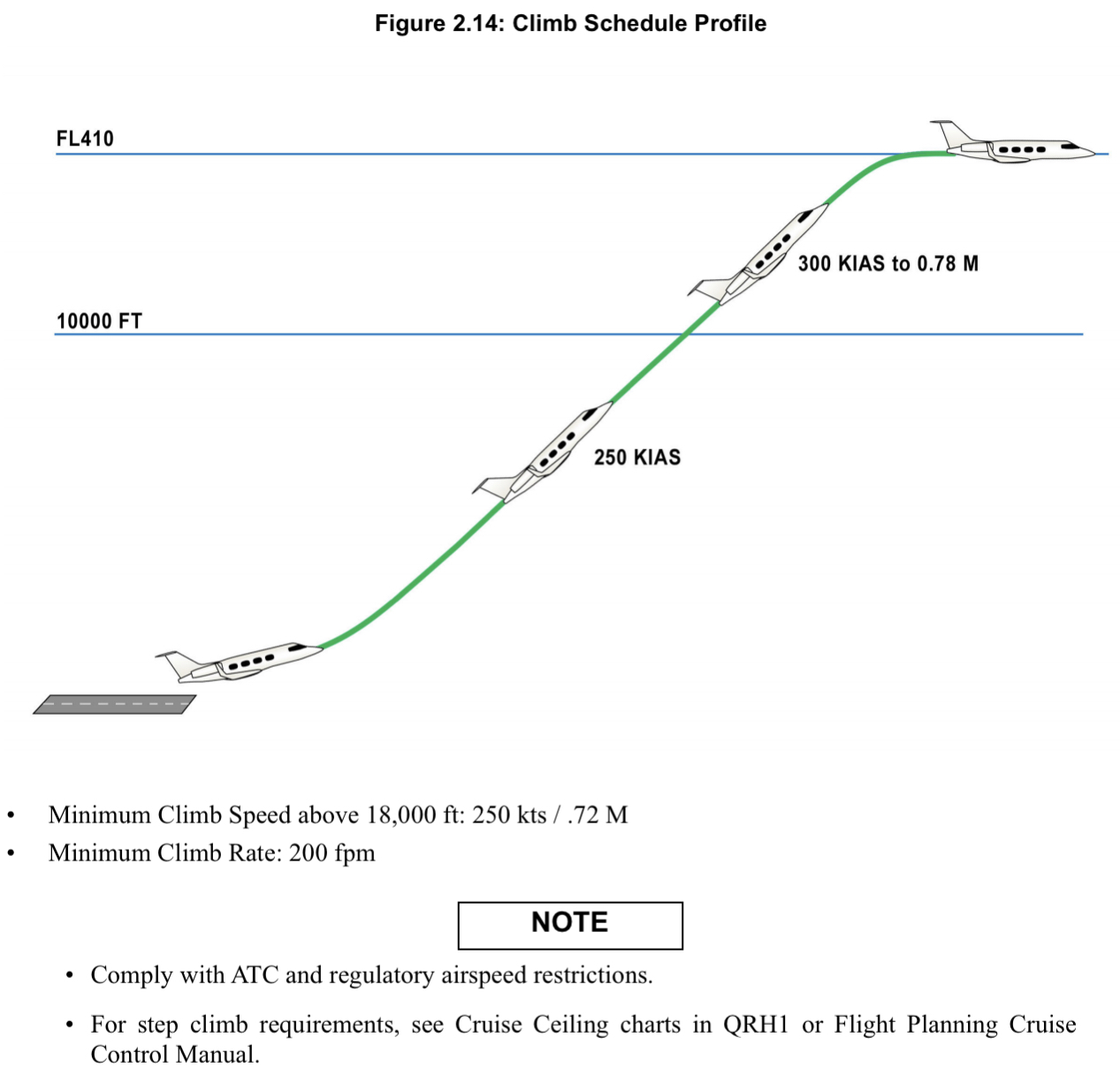 Note: min climb speed is 250 kts / 0.72 M, 200 fpm & 0.6 AOA.