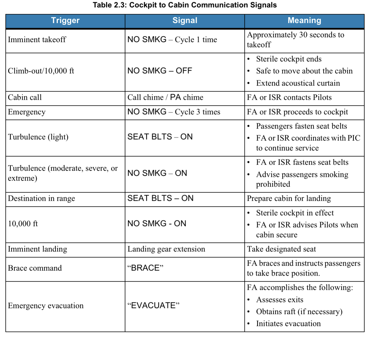 What signals to F/A are provided by pilots: