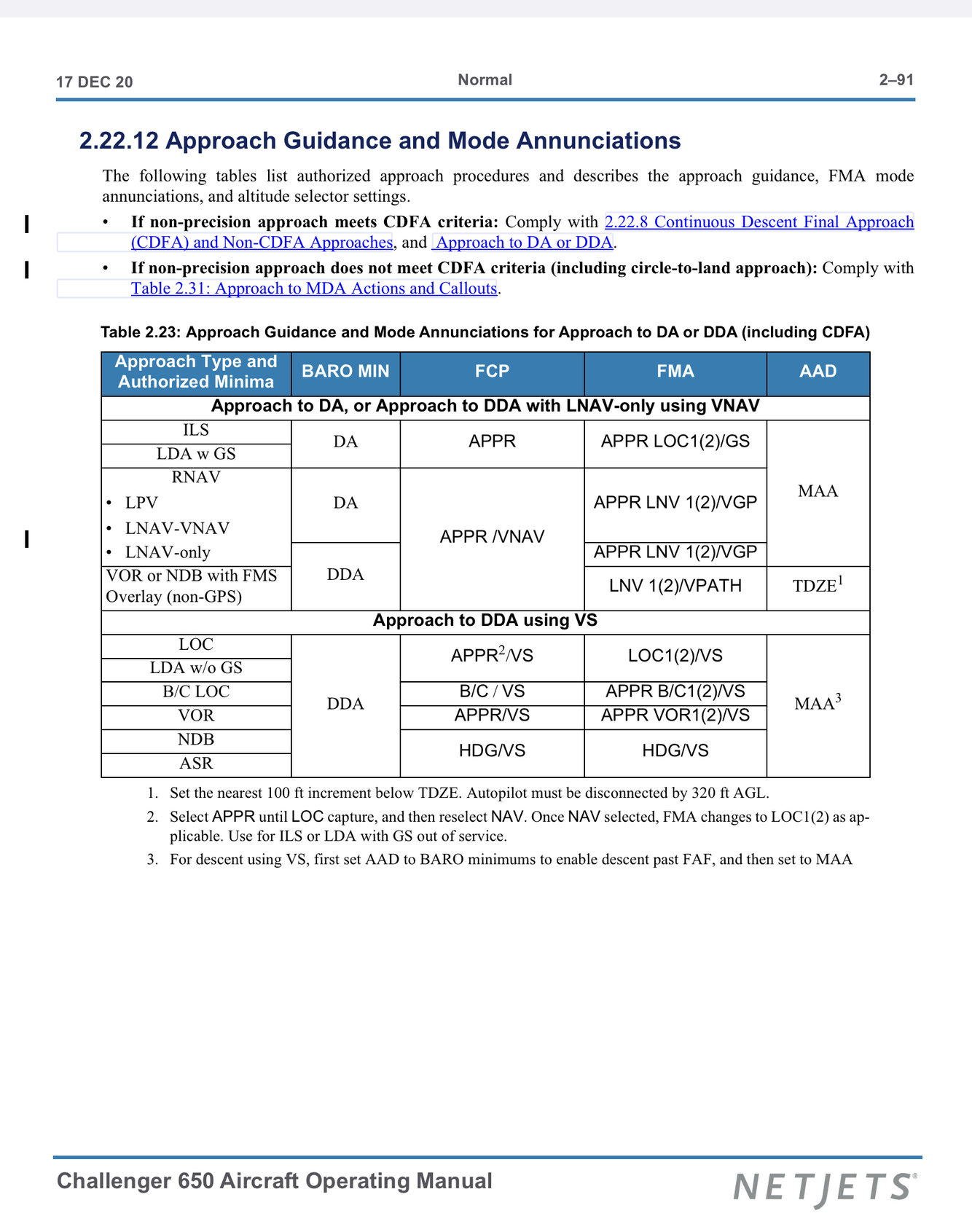 Note: CDFA = Continuous Descent Final Approach.