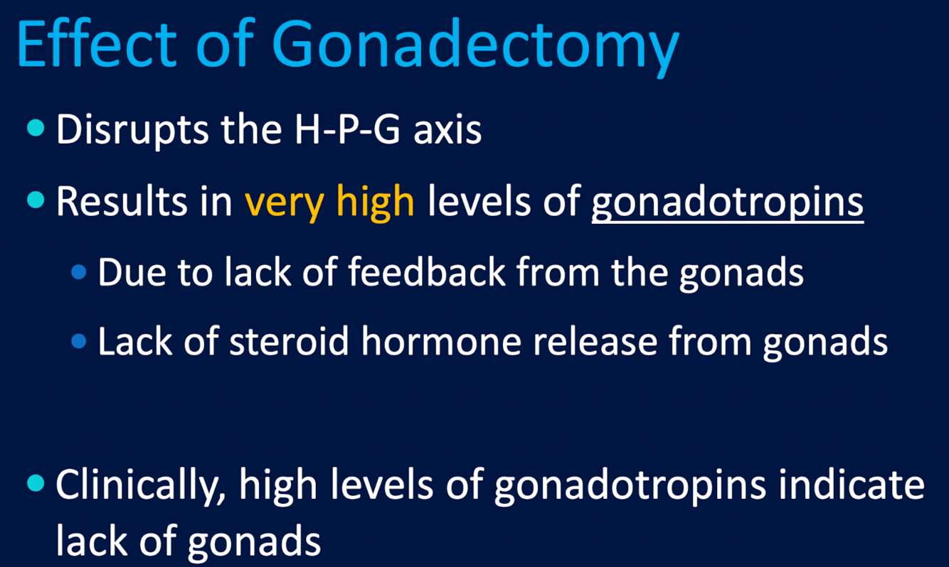 disrupts the H-P-G axis & results in very high levels of gonadotropins