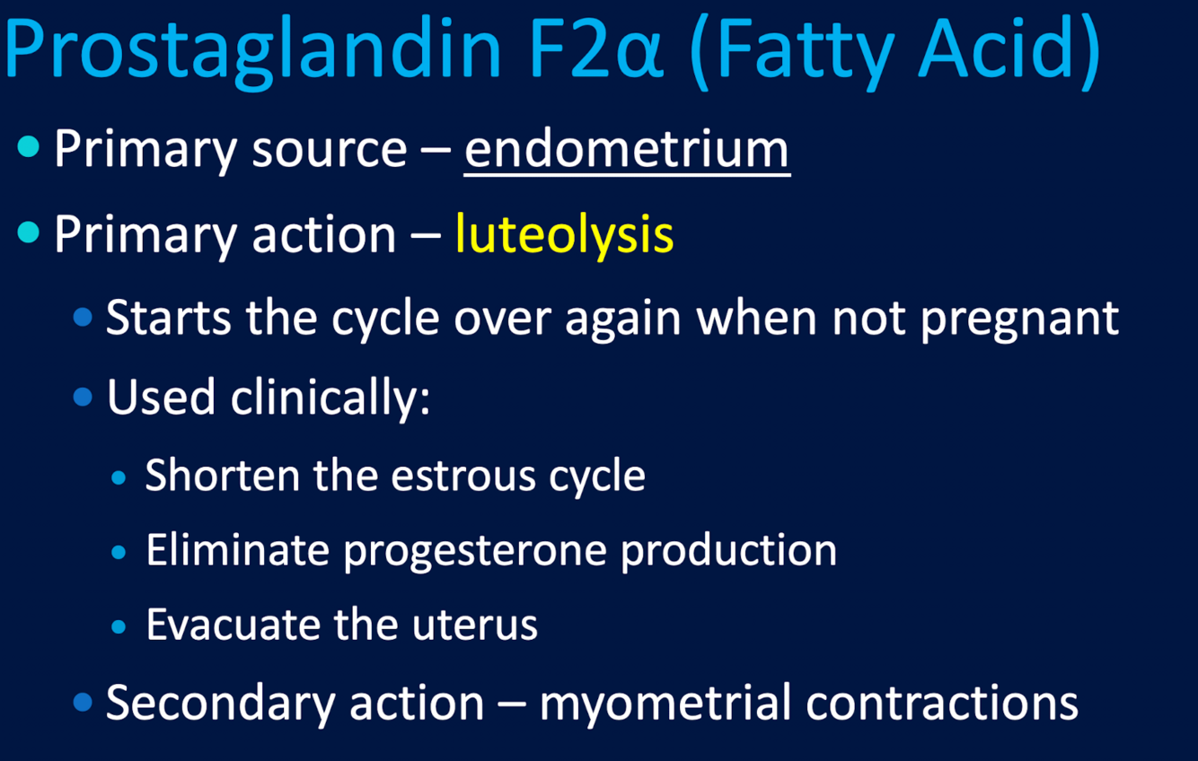 Primary action of Prostaglandin F2-alpha (a fatty acid)