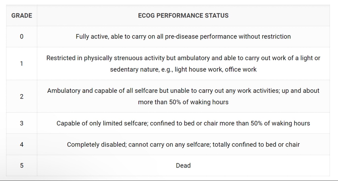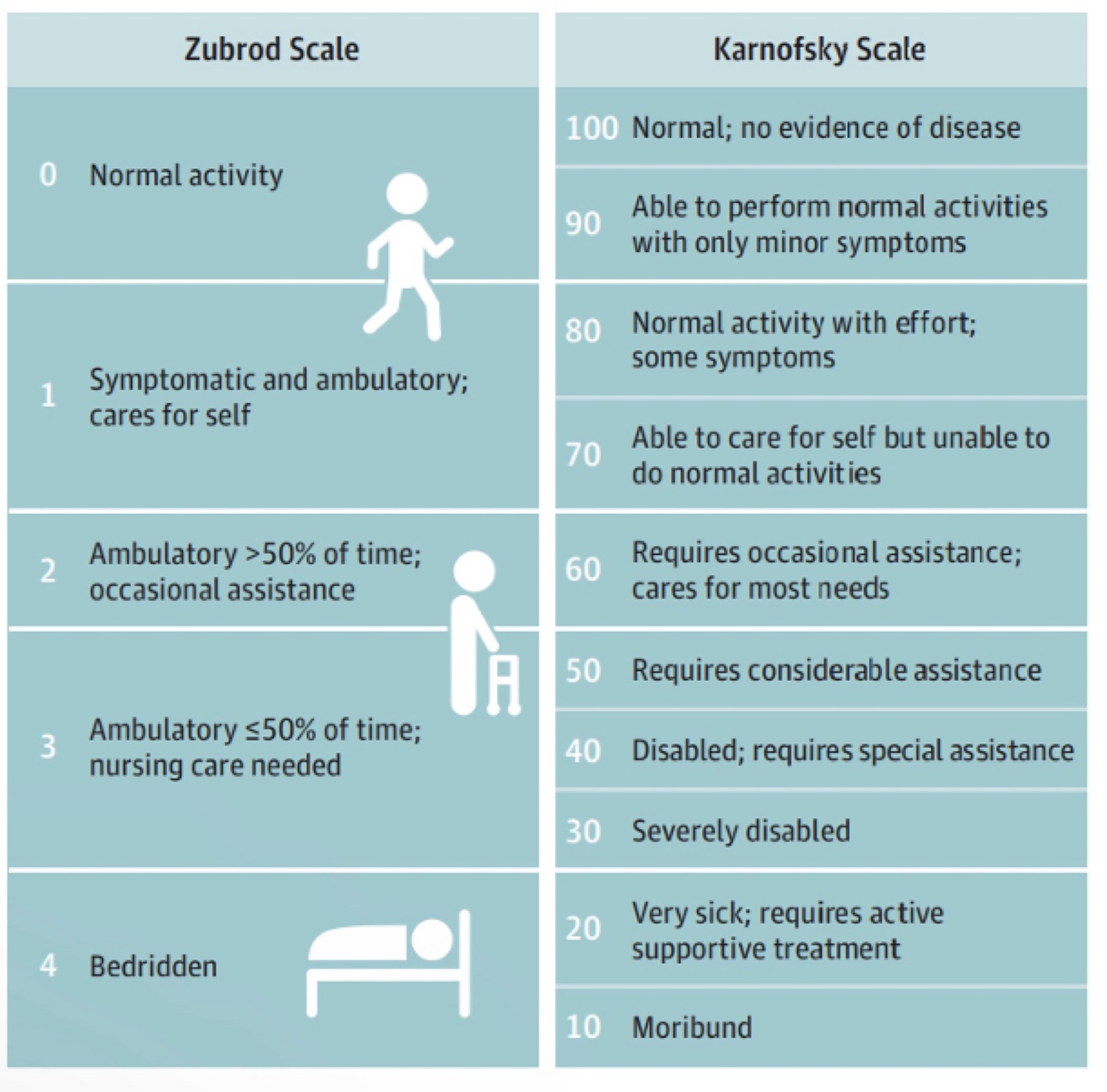 En la escala de Karnofsky del estado funcional, los porcentajes arriba de 50 quieren decir que el paciente está en tratamiento: