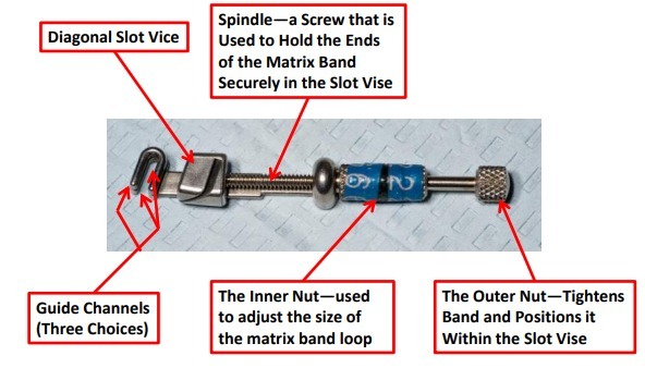 matrix band with a tofflemire retainer and a wooden wedge