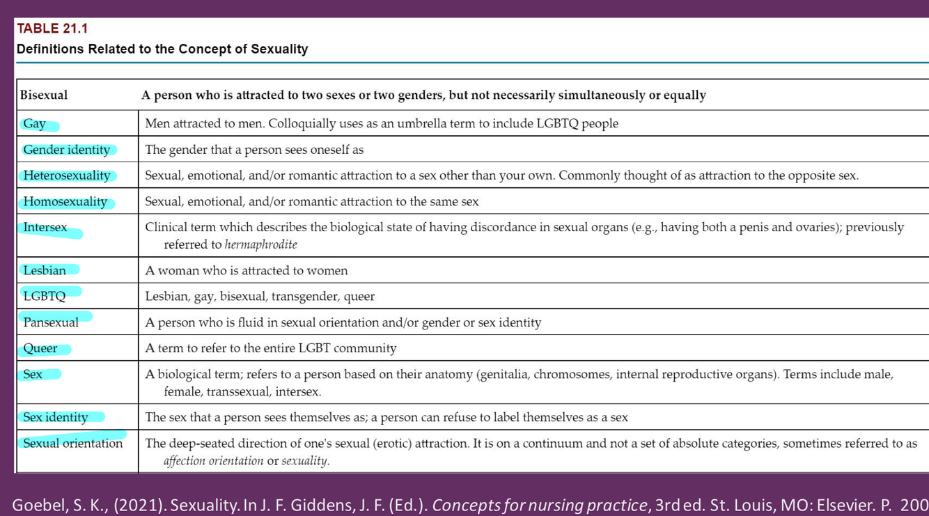 definitions of concepts related to sexuality (ie. gay, lesbian etc)