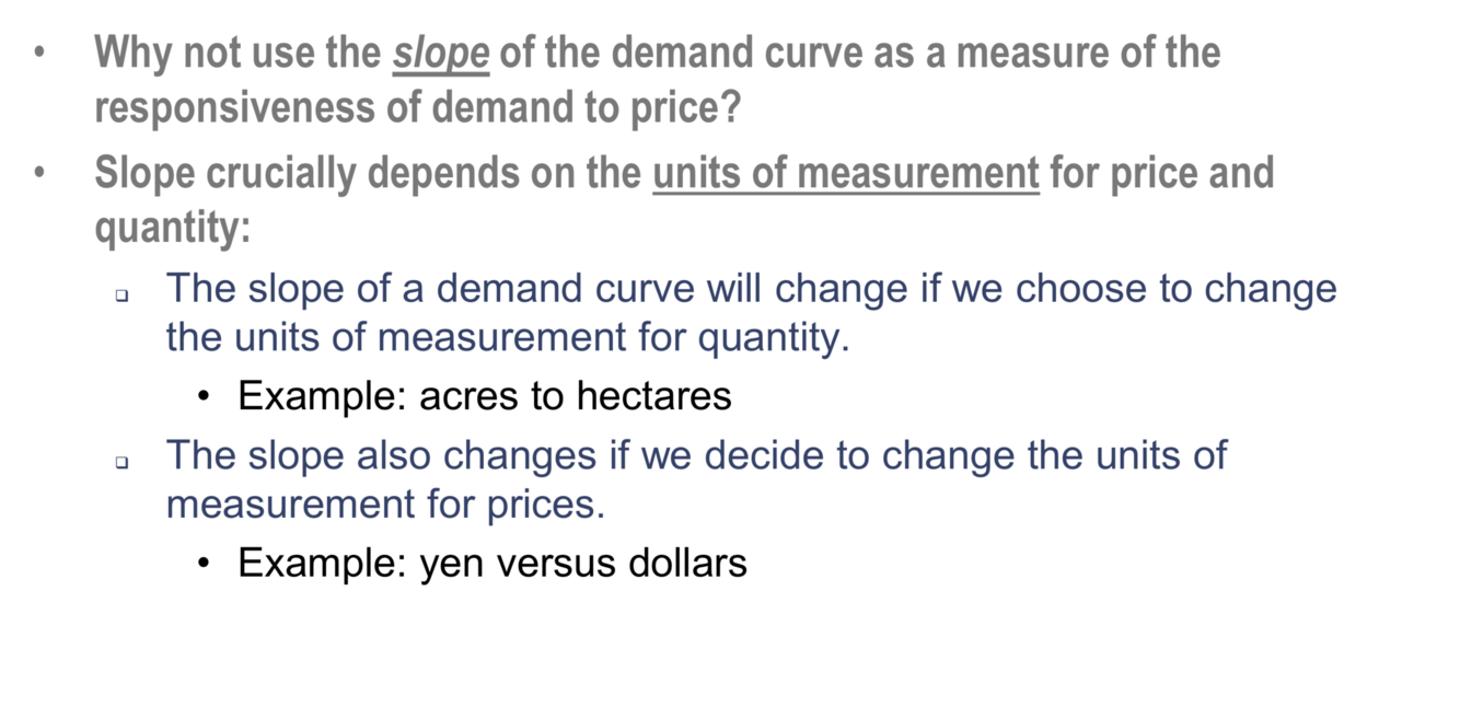 Why not use the slope of the demand curve as the measure of responsiveness to demand to price?