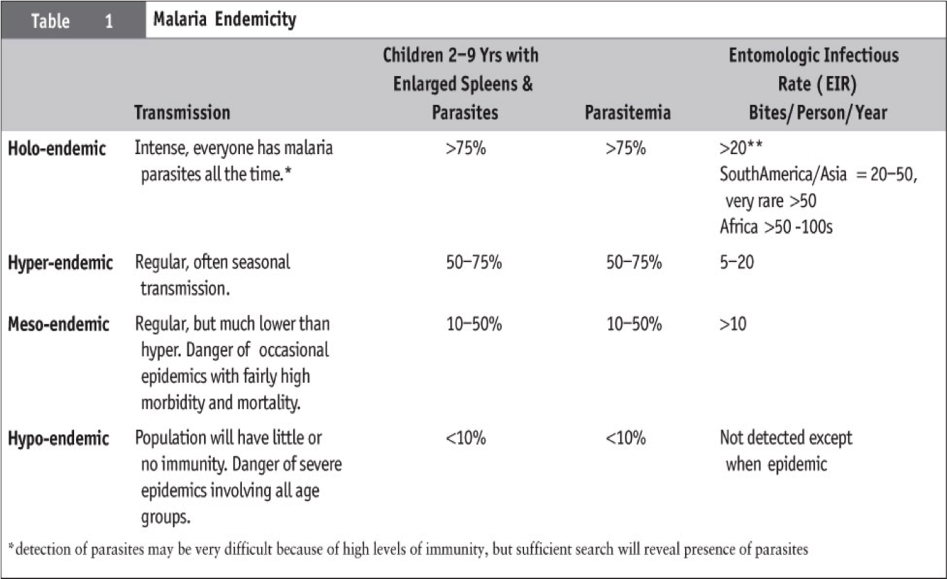 Terms for Malaria endemicity