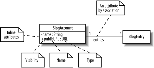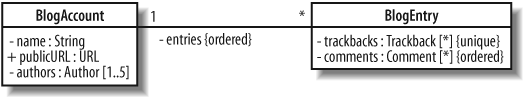 Het * geeft aan dat er elk aantal BlogEntry objecten worden opgeslagen in de entries attribute binnen de BlogAccount class