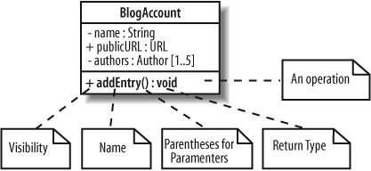 Een class wordt weergegeven als een rechthoek dat verveeld is in 3 secties;