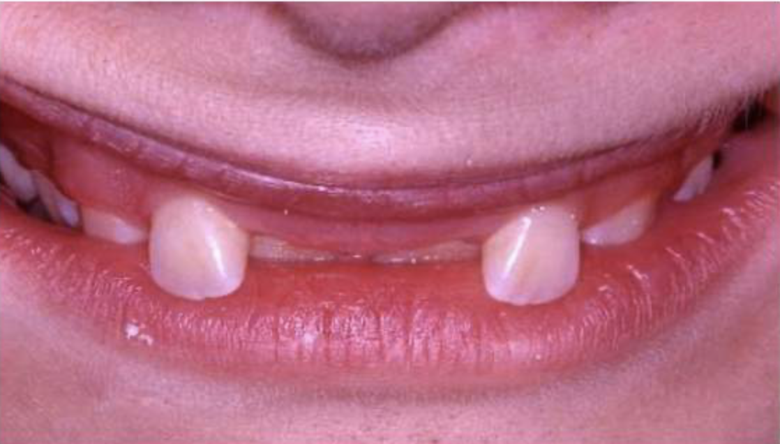 Thin labio-palatal thickness of teeth