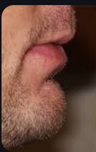 Deep labiomental fold due to the lower lip curling as a result of the reduced lower anterior face height