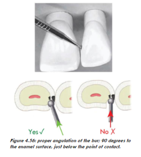 - bur is at AN ANGLE 90 degrees (straight on) to surface of the tooth
