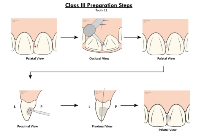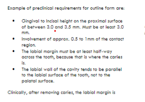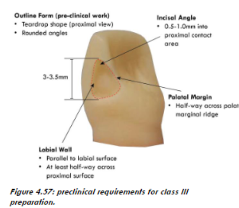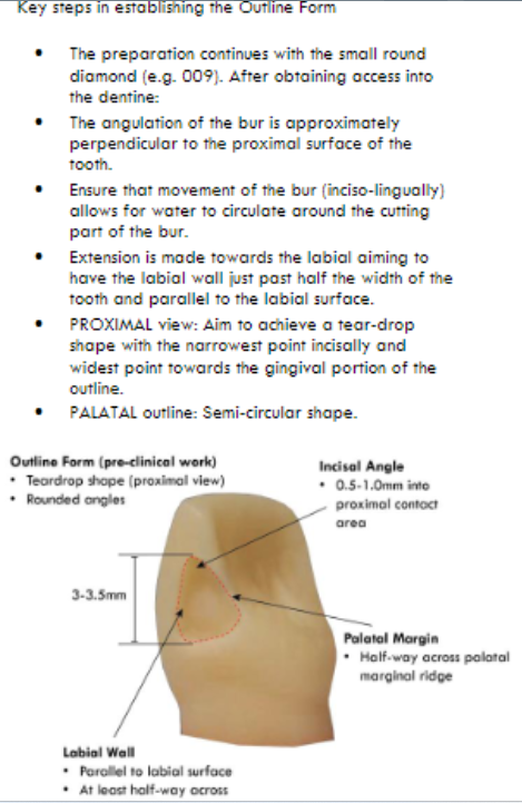 In order to protect the incisal corner of the tooth, ideally, the incisal part of the cavity will often tend to have a teardrop shape (proximal view)