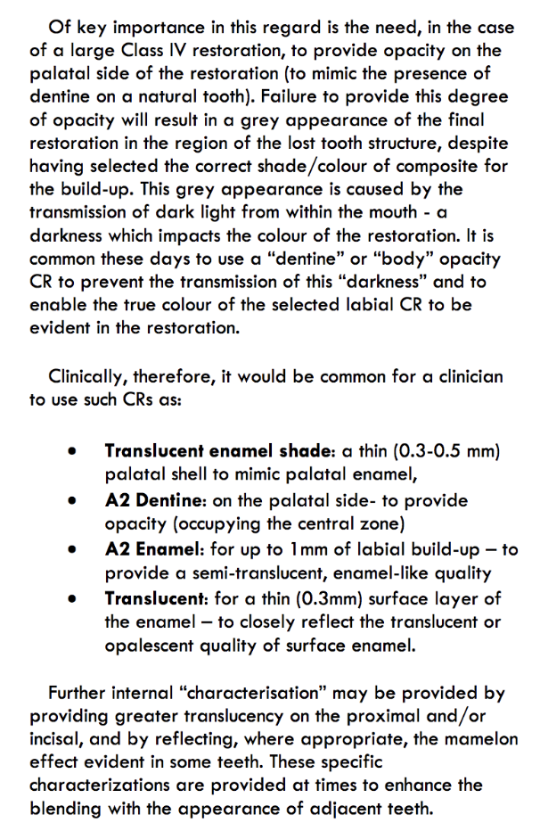opacities of quality composite resins over recent years, it has become common practice for a number of different opacities of composite to be used in building up a large
