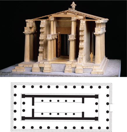 Model showing internal elevation (top) and plan (bottom) of the Temple of Aphaia