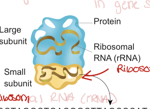 - rRNA (ribosomal RNA) encoded by genes and DNA