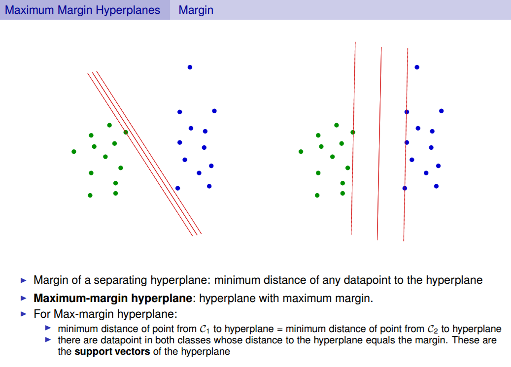 What are a maximum margin hyperplane?