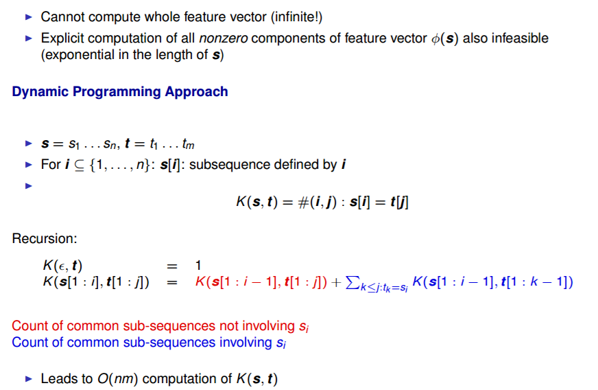 The all subsequence kernel, we can often not compute whole feature vector. What to do?