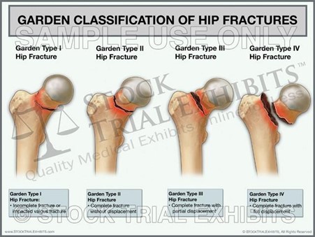 4 classification systems for hip fractures? Which is most commonly used? Outline?