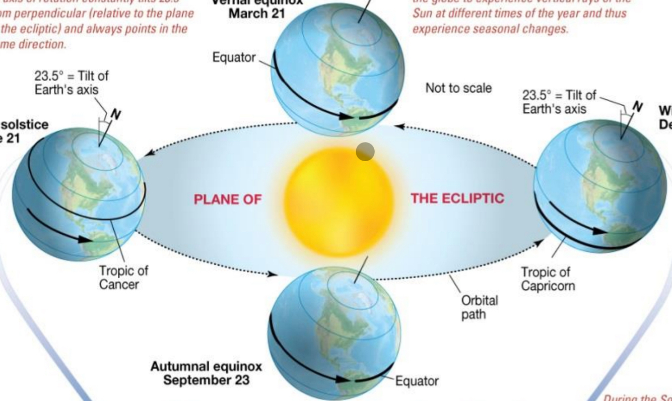 Axis tilt = 23.5 DG perpendicular to plane