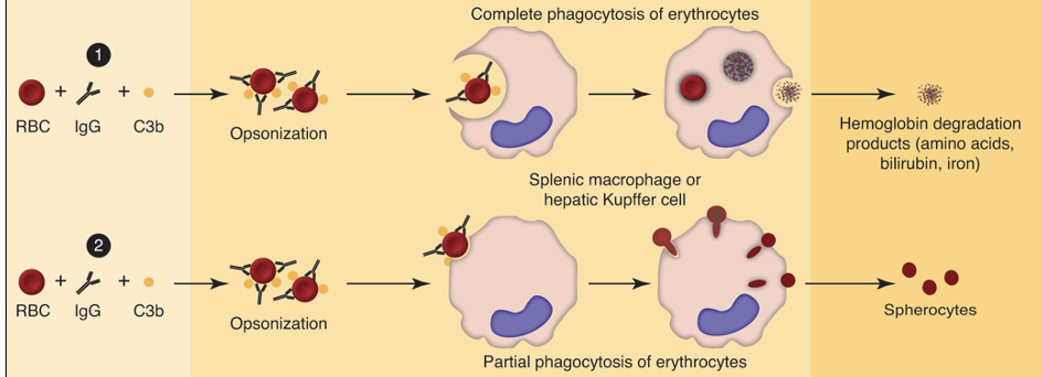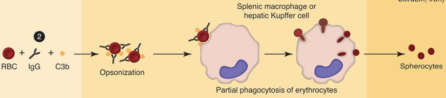 from destruction of RBC via antibodies, opsonization