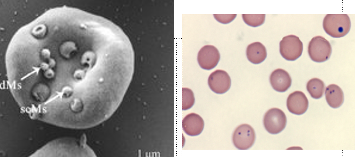 pinched off piece of membrane, flat clear area on side of RBC