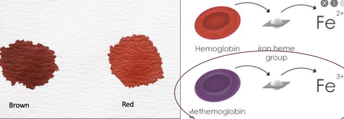 oxidative hemolytic anemia caused by injury to iron of hemoglobin causes what clinical finding?